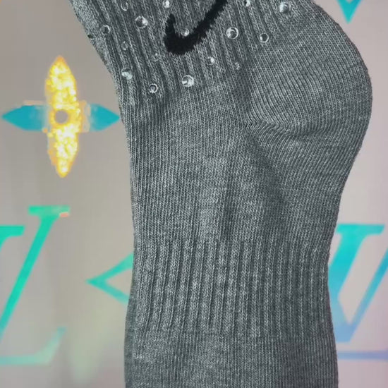 ☆ 1 PAIR OF NIKE ANKLE SOCKS IN GREY WITH CLEAR CRYSTAL RHINESTONES ☆