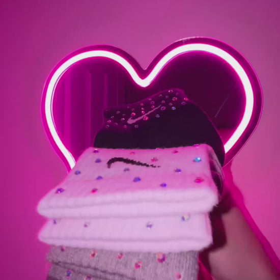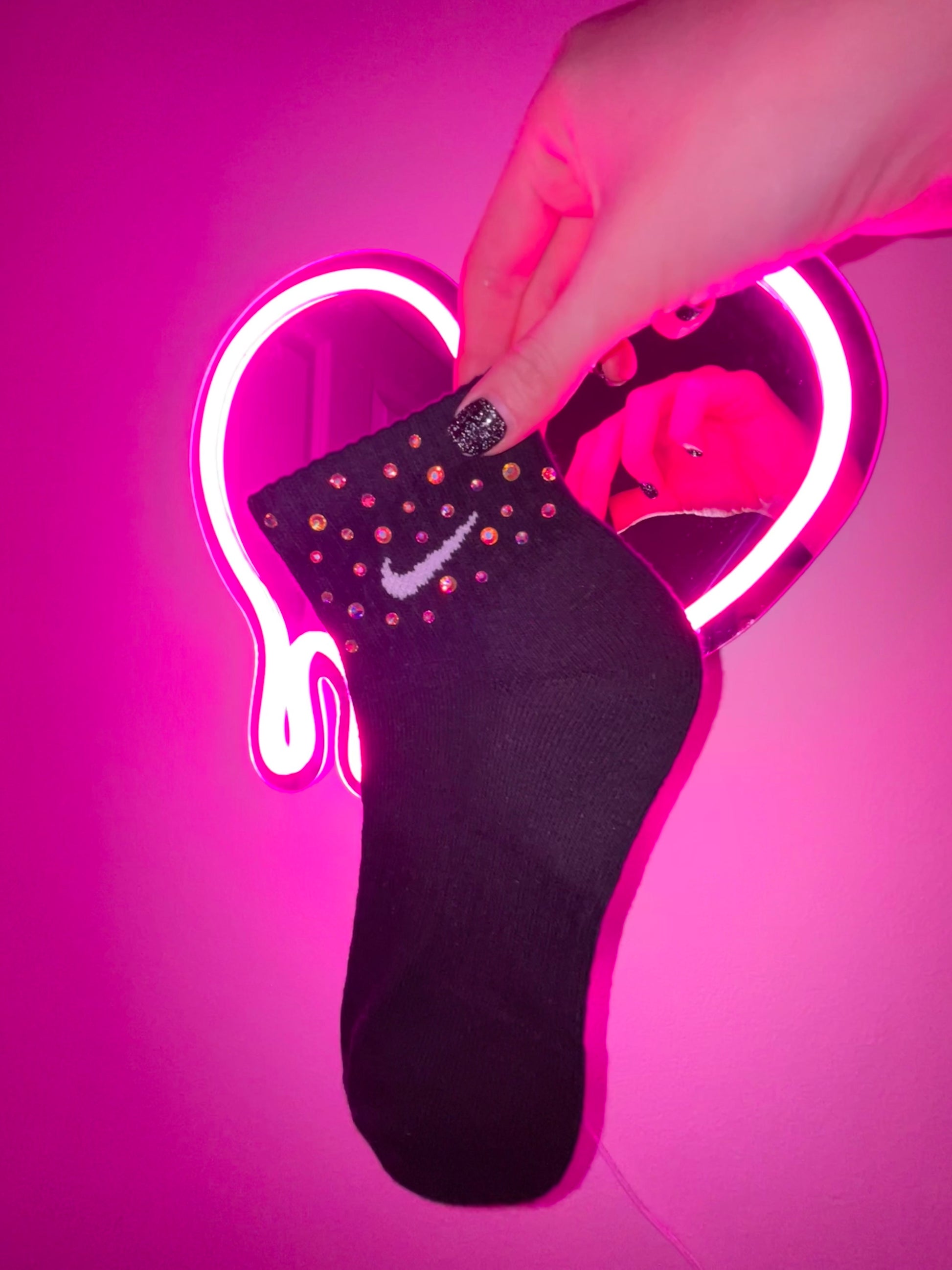 Add some sparkle to your step with these custom hand-embellished Nike Ankle Socks. Using high-quality hotfix rhinestones, these socks are stand out and full of bling!