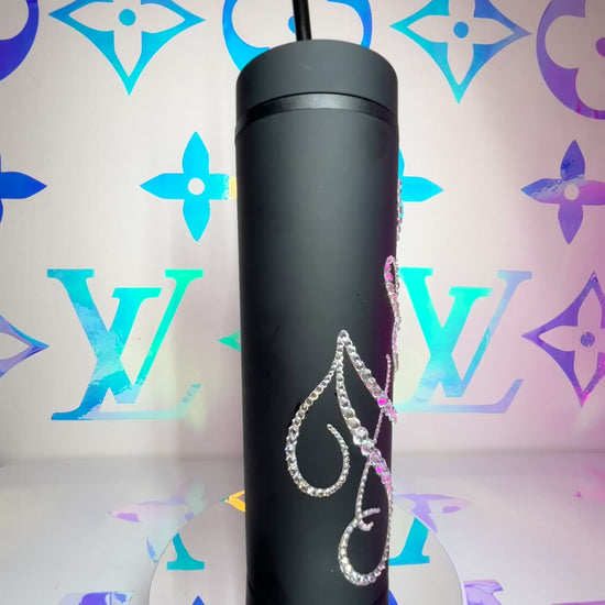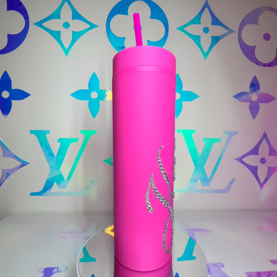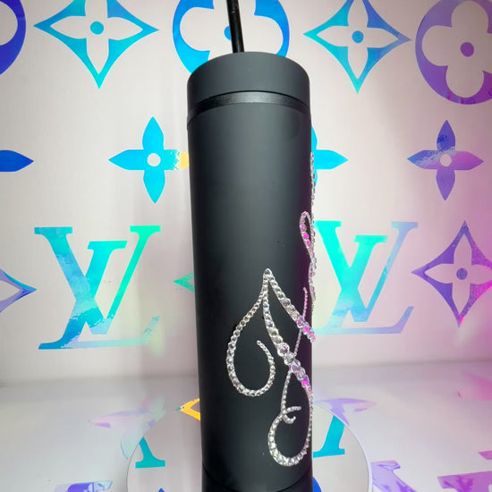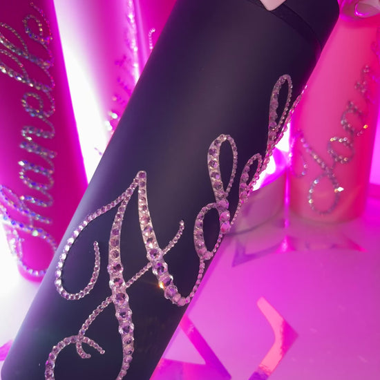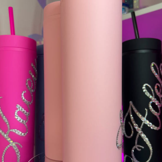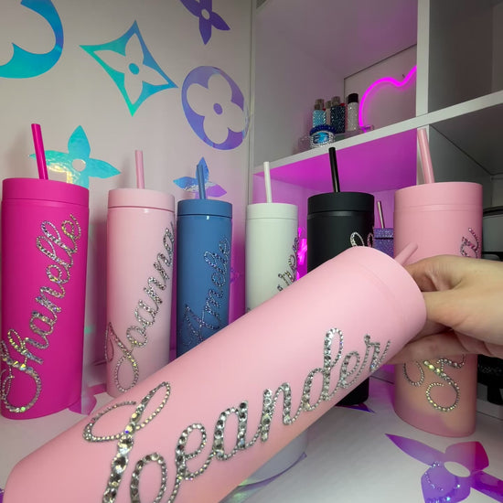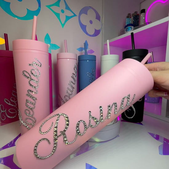 ♡ PERSONALISED SKINNY TUMBLER WITH CLEAR CRYSTAL MULTI-SIZE RHINESTONES ♡