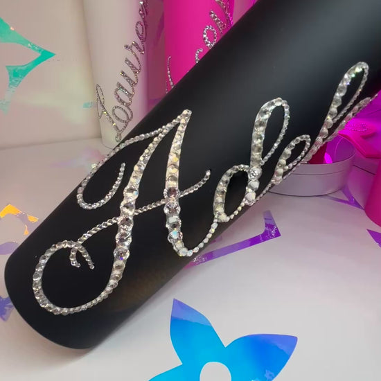- HAND-EMBELLISHED LETTERS USING HIGH-QUALITY RHINESTONES WITH NAME OF CHOICE (UP TO 12 LETTERS)