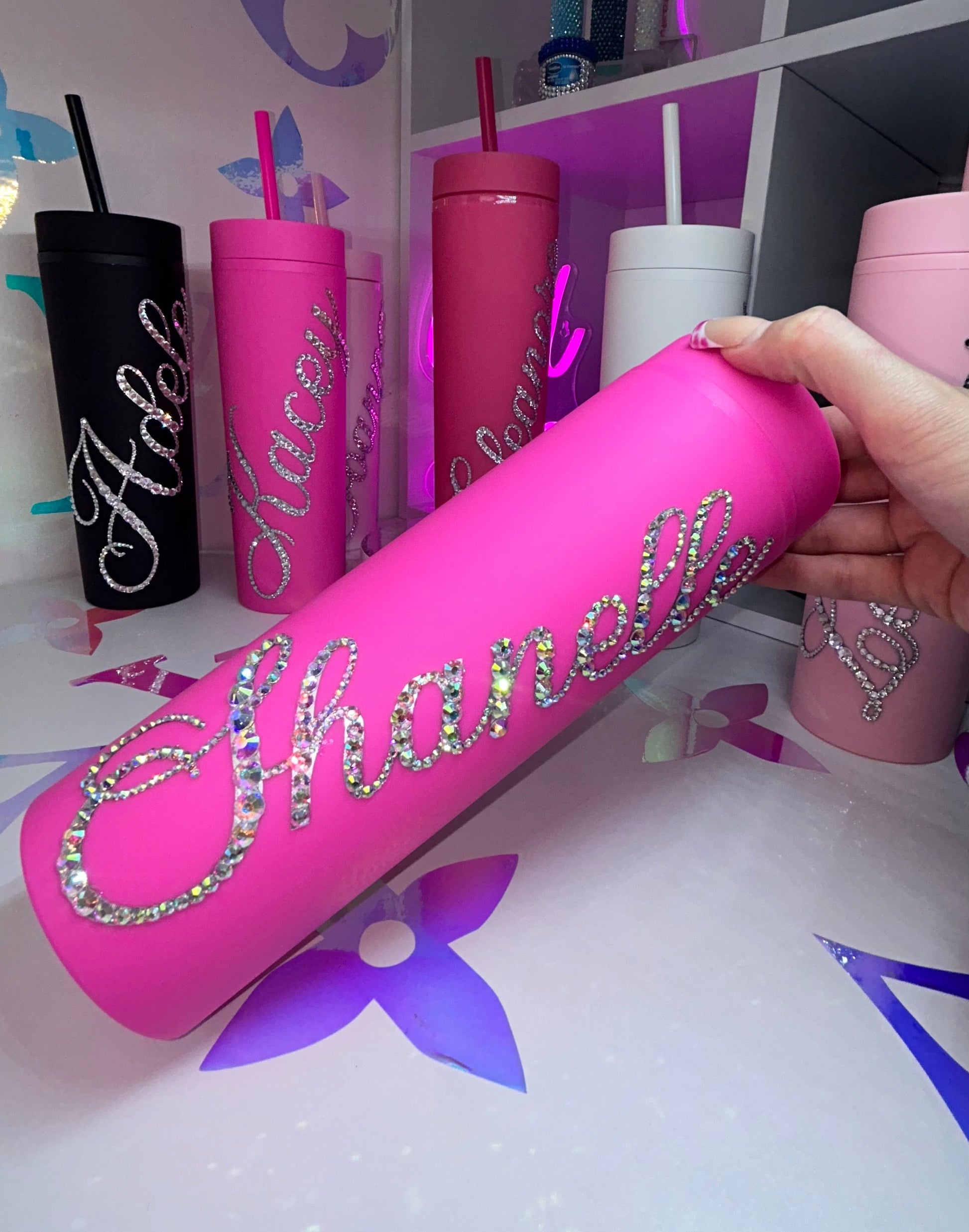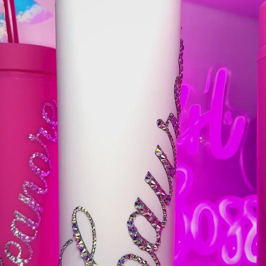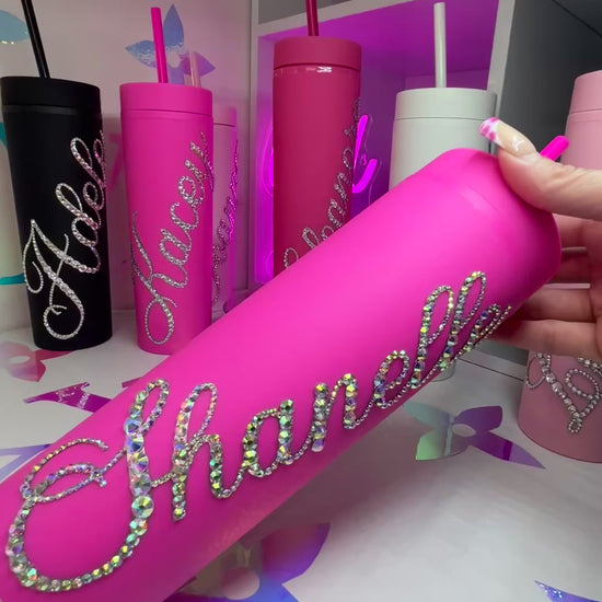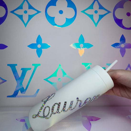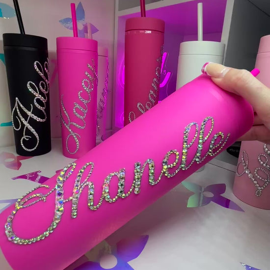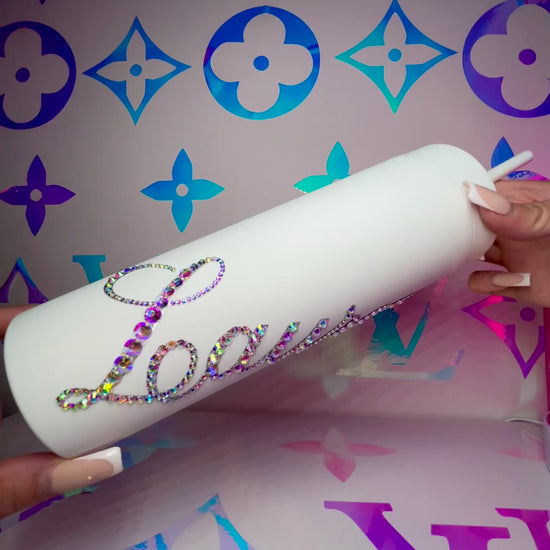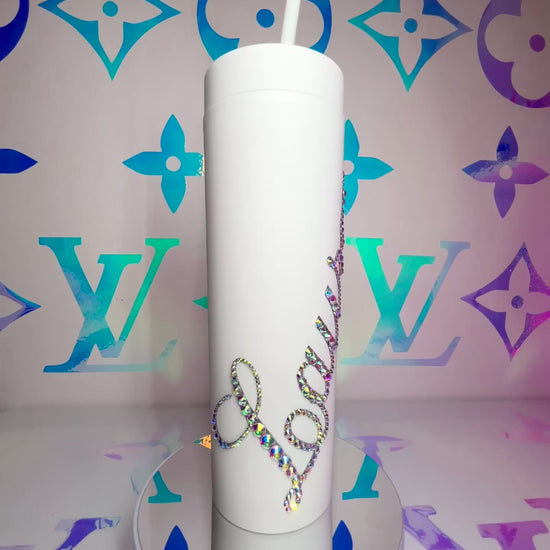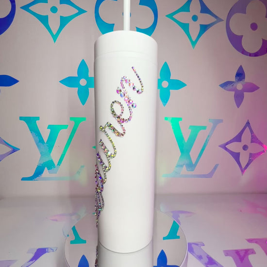 ♡ PERSONALISED MATT SKINNY TUMBLER WITH CRYSTAL AB MULTI-SIZE RHINESTONES ♡