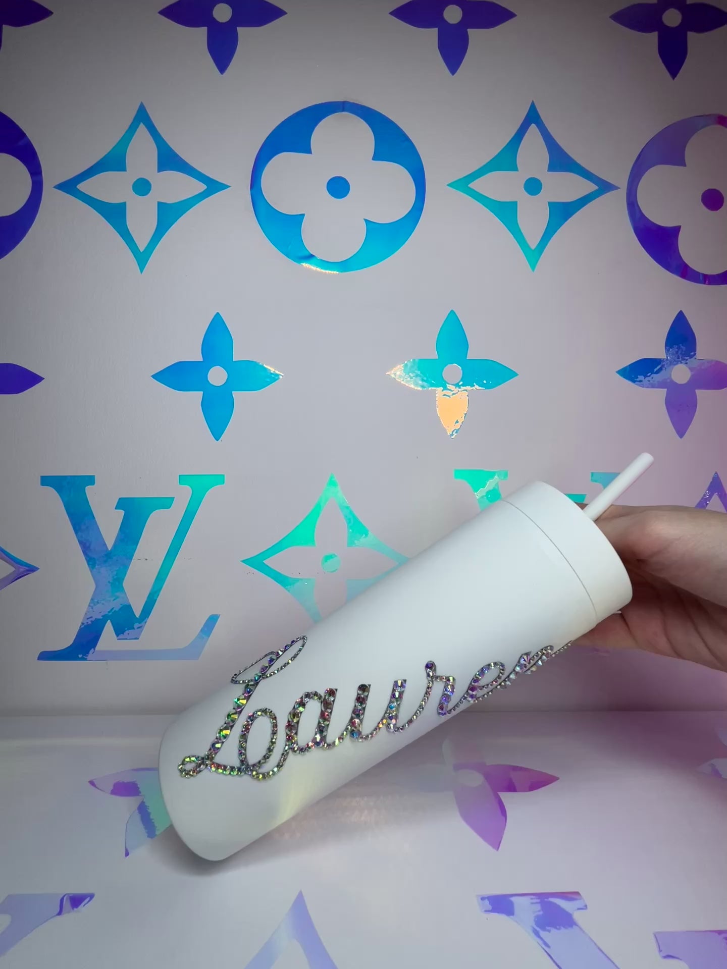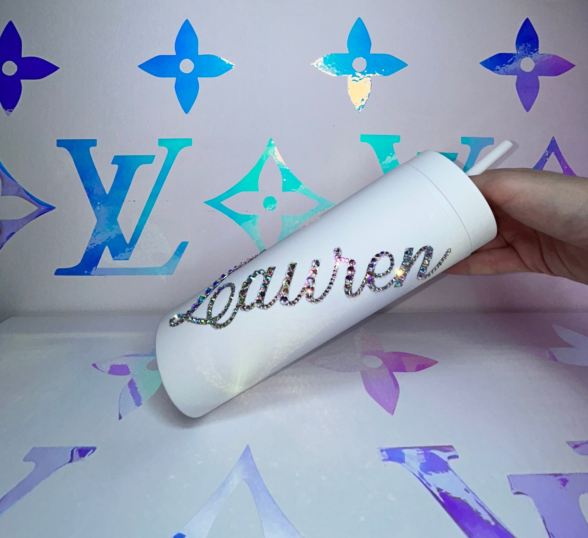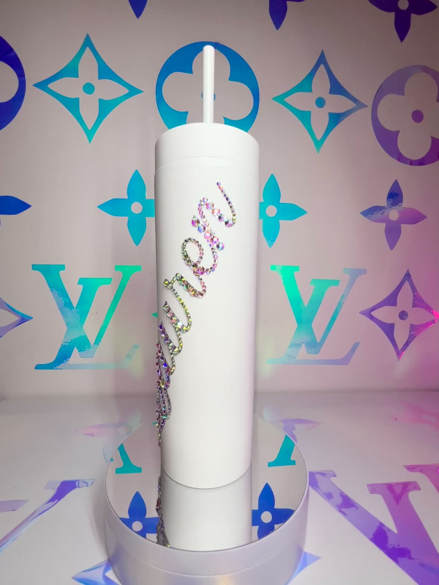 ♡ PERSONALISED MATT SKINNY TUMBLER WITH CRYSTAL AB MULTI-SIZE RHINESTONES ♡