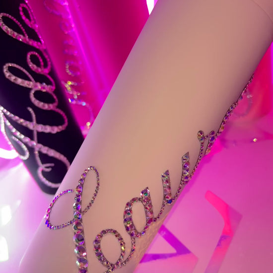 - HAND-EMBELLISHED USING HIGH-QUALITY RHINESTONES WITH NAME OF CHOICE (UP TO 12 LETTERS)